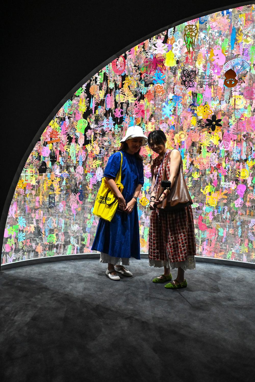 9月12日,遊客在塱頭村春陽台藝文中心的藝術展覽打卡拍照。