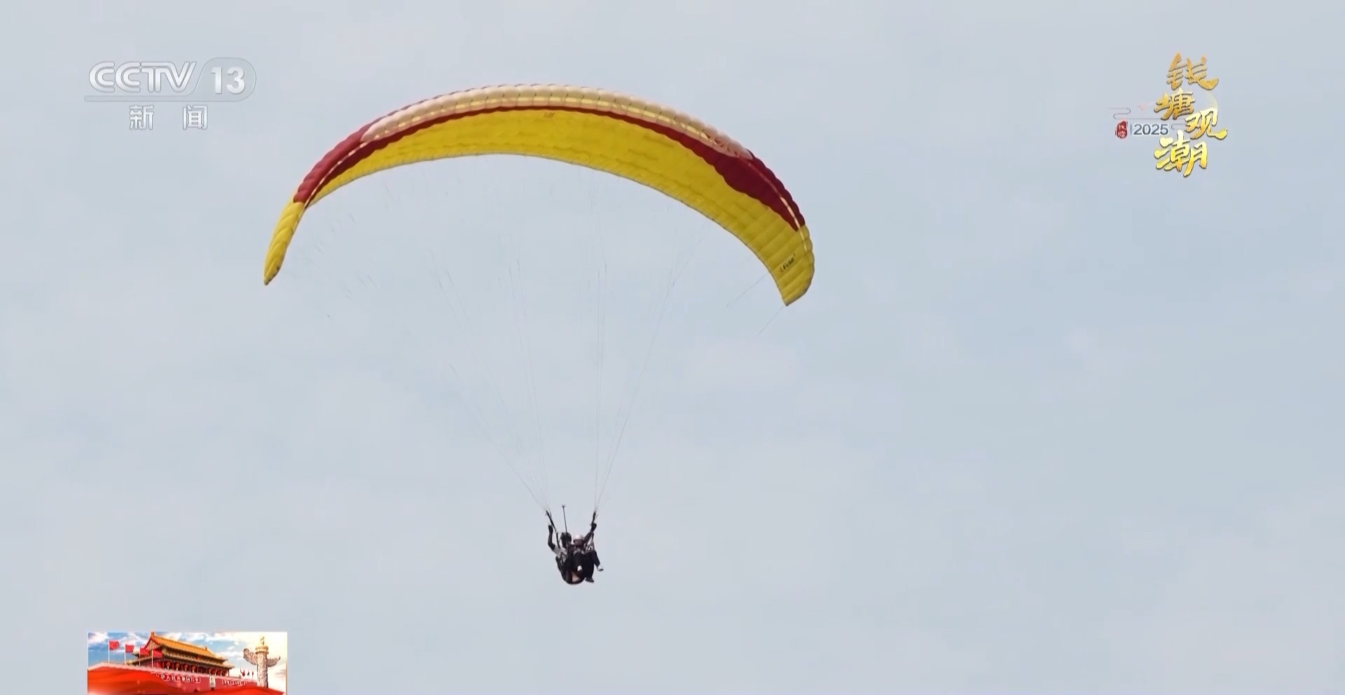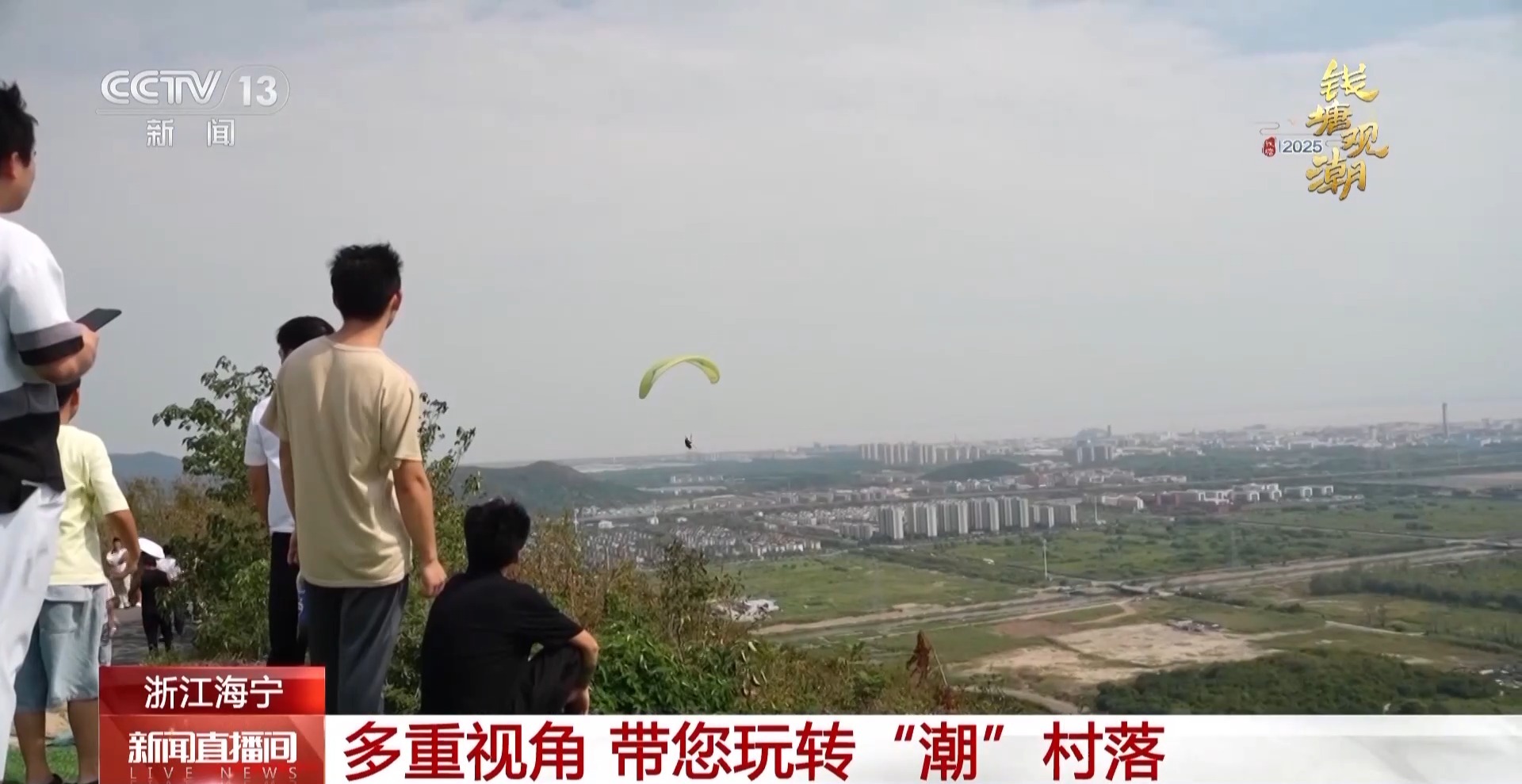 玩轉“潮”村落!第一站,我們打卡的是尖山村。在江邊的大尖山頂上,一朵朵乘江風而起的滑翔傘,打開了許多遊客的潮玩新體驗。