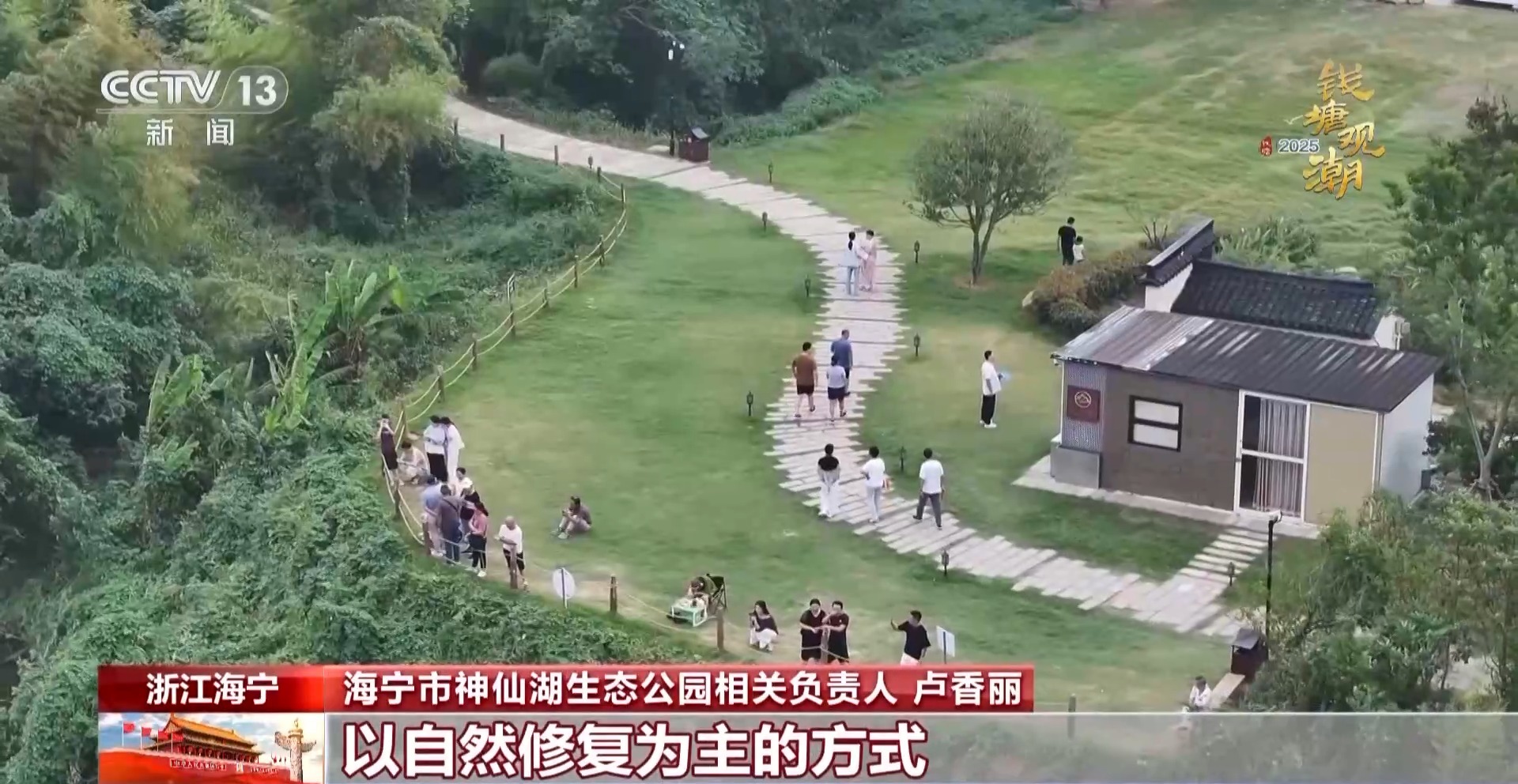 海寧市神仙湖生態公園相關負責人 盧香麗*:*以自然修復為主的方式,建造成一個1300平方米的湖區。有武俠主題的音樂會、生活集市等一系列的活動,讓遊客到這邊能更好地體驗我們這邊的人文特色。