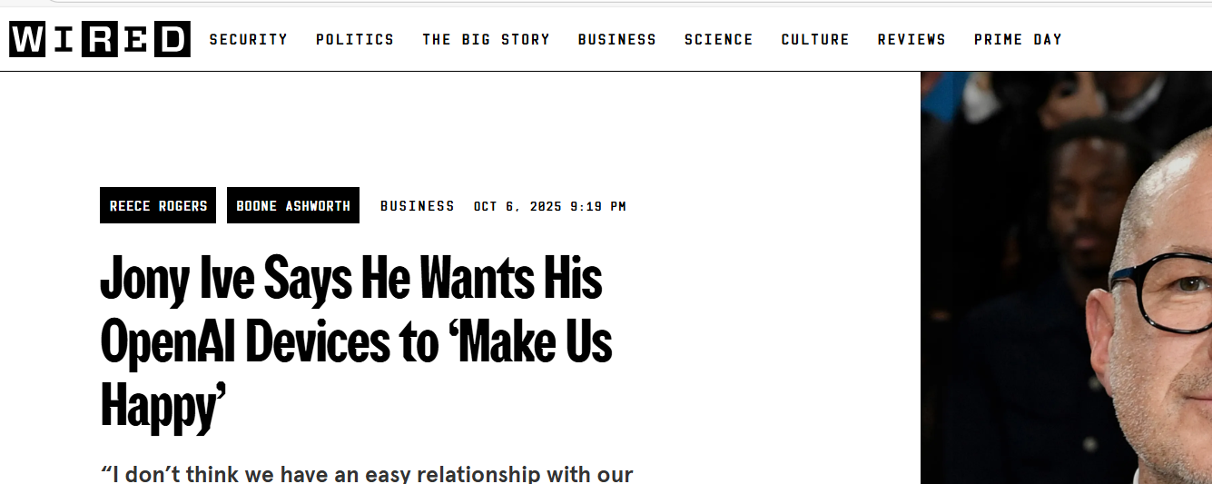 【環球網科技綜合報道】10月7日消息,據WIRED報道,在OpenAI日前舉辦的DevDay 2025開發者大會上,首席執行官山姆·阿爾特曼與前蘋果設計大師喬尼·艾維的同台亮相,引發了科技界的廣泛關注。兩人雖對正在開發的“一系列設備”語焉不詳,但透露的信息已足夠讓人浮想聯翩。