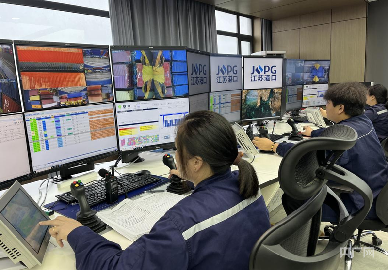南京港龍潭集裝箱有限公司總經理段昌尉介紹,“工作人員在幾公里外的辦公大樓裏利用‘智慧大腦’遠程操作。龍潭港區平均每天有40餘艘集裝箱船停靠,自從有了‘智慧大腦’,一個工作人員就能同時操作4到5台軌道吊,效率實現倍增。”