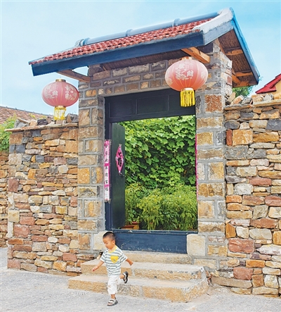 話別王本華,向村莊更深處走去。一家由傳統民居改造的民宿坐落於此。民宿共有6個院子、10間客房,較為完整地保留了“幹插石頭房”建築風貌和沂蒙山區村落文化。