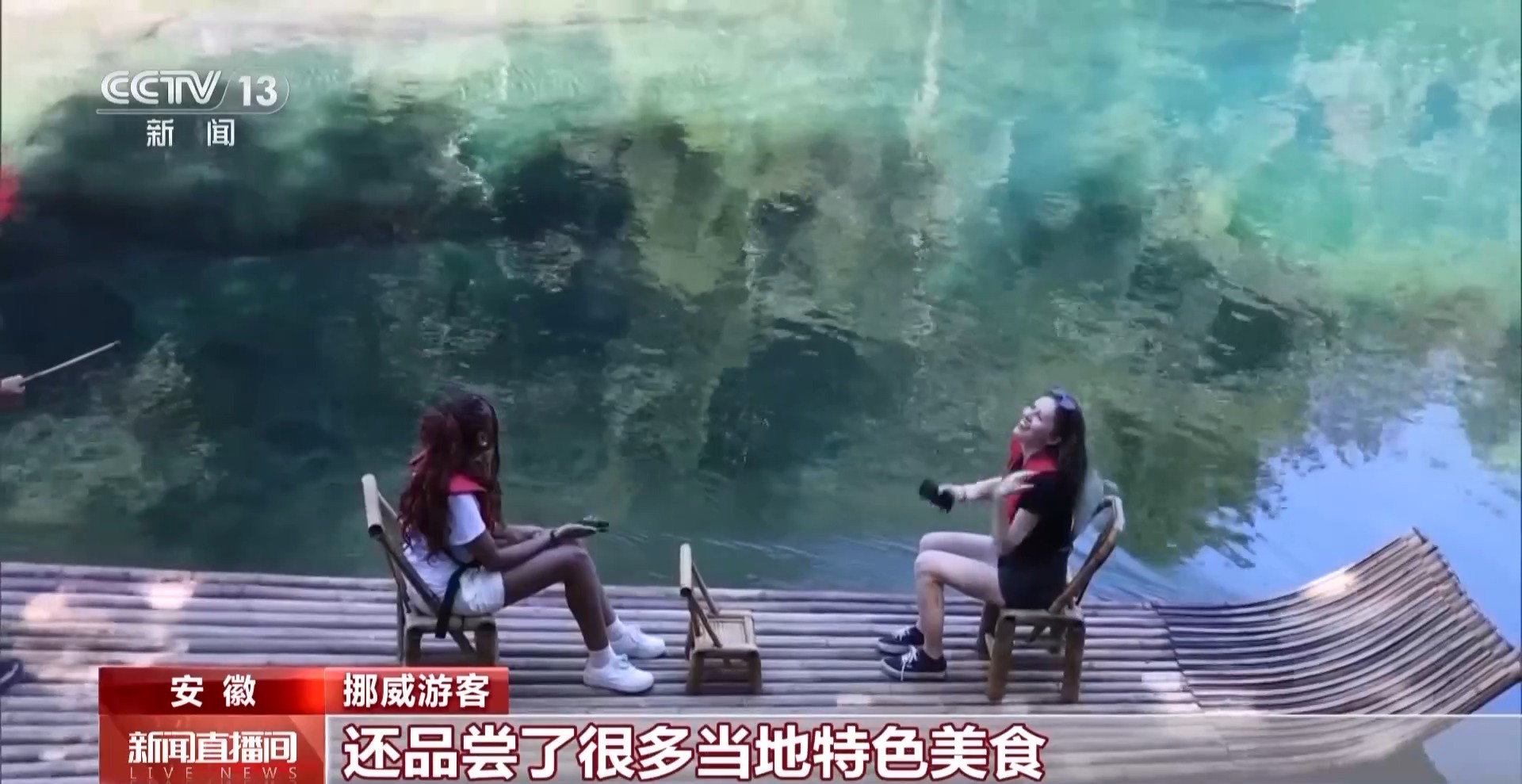*挪威遊客:*第一天我們去漂流,還品嚐了很多當地特色美食。今天我們來村裏遊玩,因為我們希望真正融入中國。