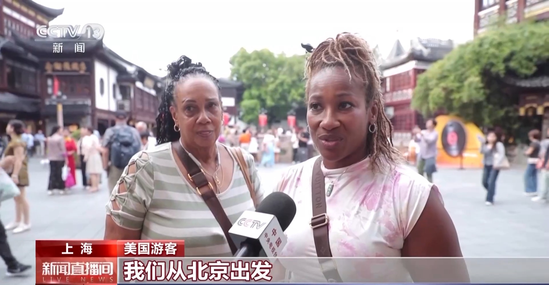 記者在上海豫園遇到了不少外國遊客,其中幾位美國遊客這次的旅行計劃是“暢遊”中國。