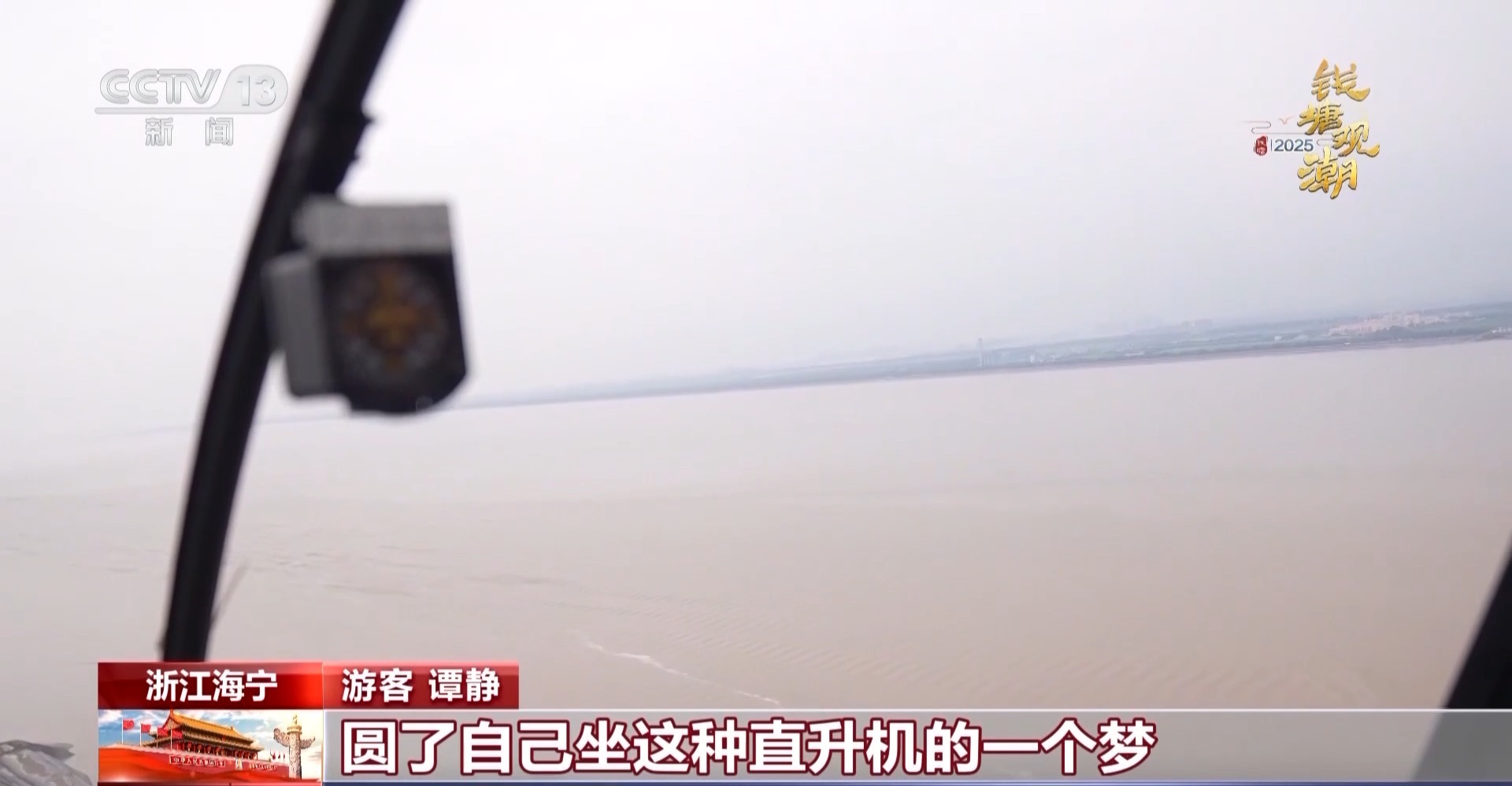 在錢塘江潮水到來的這幾天,總枱記者用大量的空中視角展現了錢江潮的獨特魅力。前不久,海寧的首個航空飛行營地建成了,遊客可以坐上直升機,在空中領略錢江潮的風采。