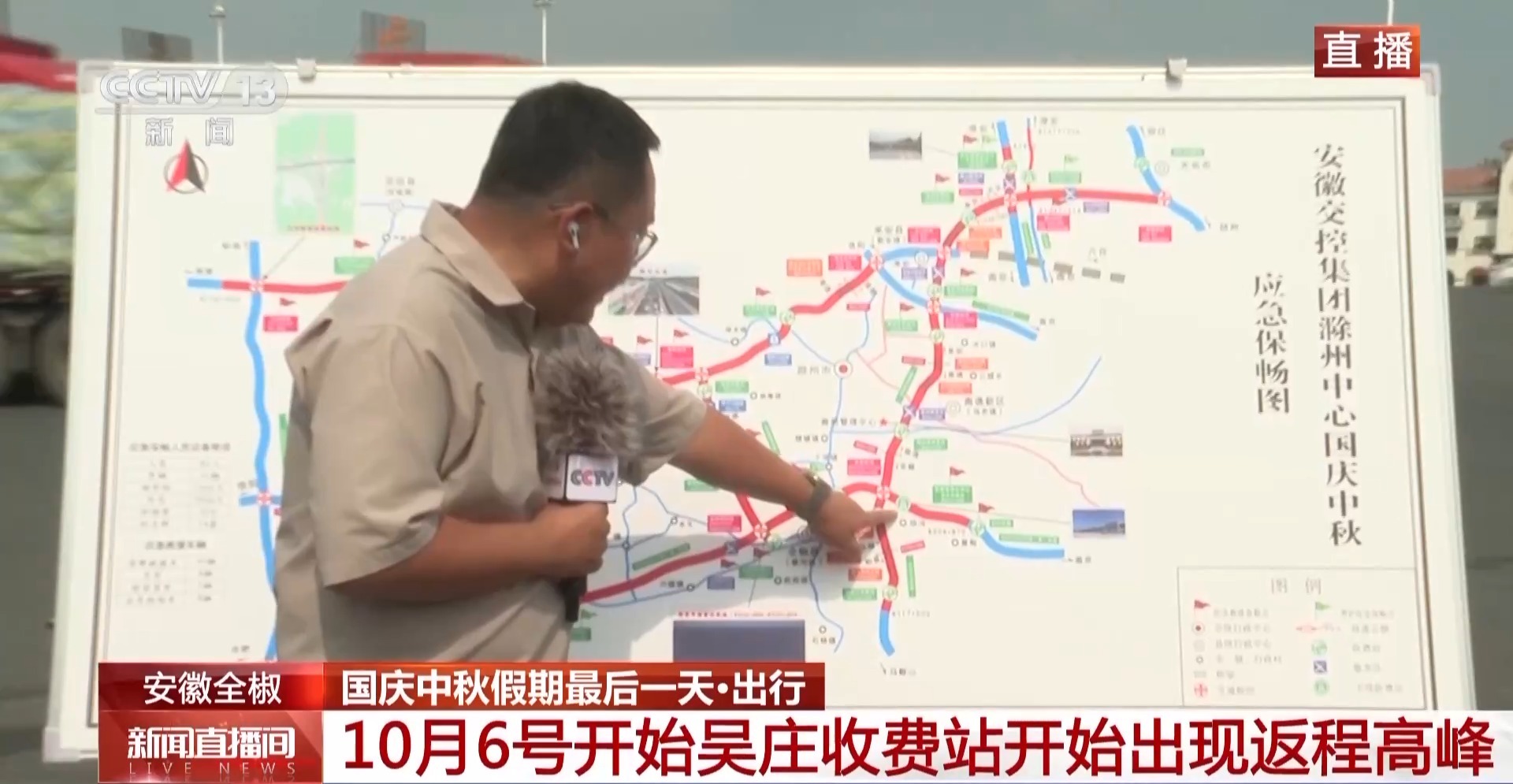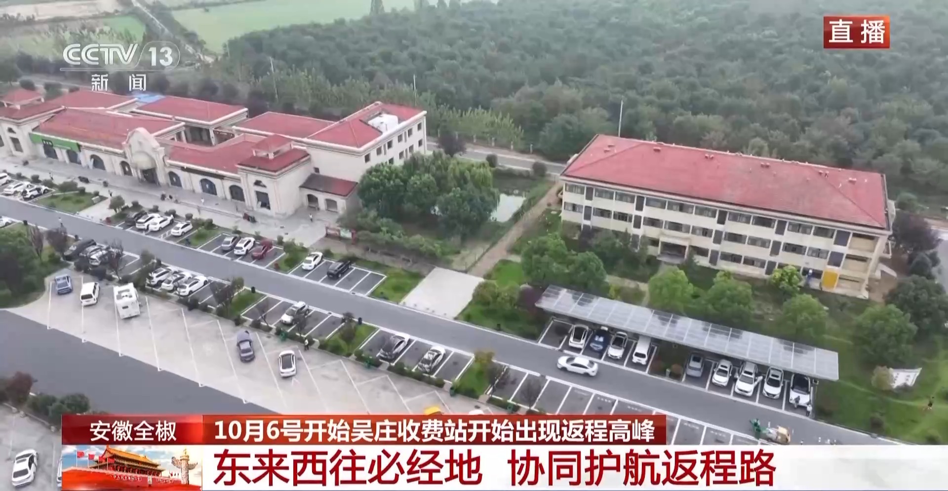 位於安徽省全椒縣境內的吳莊收費站毗鄰安徽、江蘇兩省的交界處,收費站雙向共有36個車道,也是目前國內車道數最多的收費站。從10月6日開始,吳莊收費站就開始出現返程高峯。