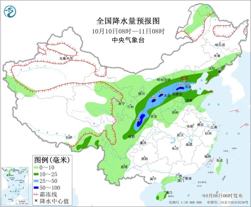 未來,降雨將主要分佈在西北地區東部、四川盆地東北部及華北、黃淮等地。其中8日至9日,四川盆地北部、甘肅東部、寧夏、陝西中北部、山西中北部、內蒙古中部偏南地區及京津冀等地有中到大雨,局地暴雨或大暴雨;10日至13日,雨帶稍有南落,西北地區東部、四川盆地、華北中南部、黃淮等地自西向東還將出現中到大雨,局地暴雨或大暴雨。