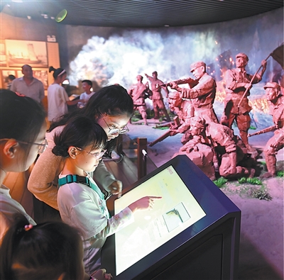 10月7日,安徽合肥渡江戰役紀念館,遊客通過多媒體技術瞭解當年百萬雄師過大江的細節。