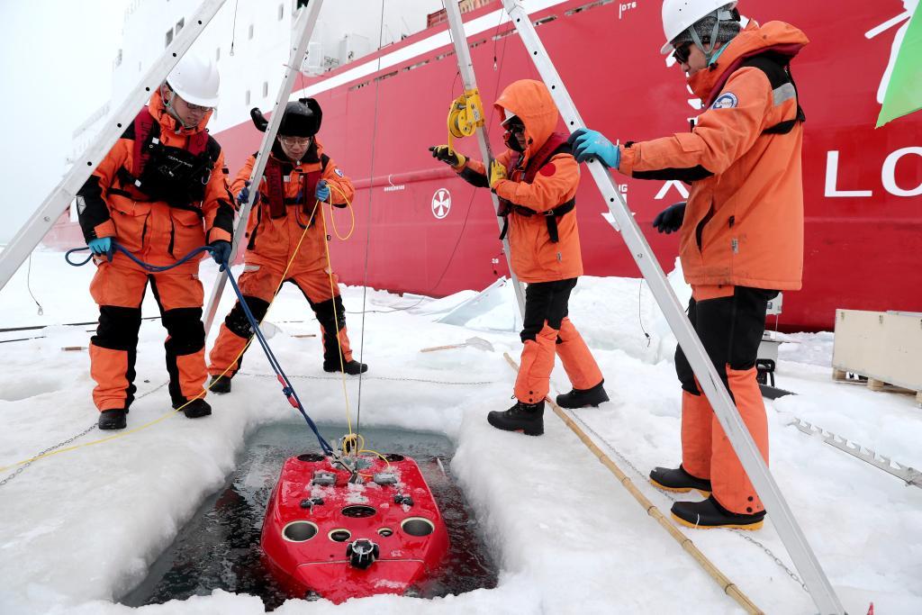 “雙模AUV是具備水下巡遊與冰底爬行兩種運動模式的水下機器人,本次考察期間共完成12次下潛,順利完成多項指標測試驗證,同步開展了冰下海洋環境觀測,獲得了包括電導率、温度、鹽度、溶解氧、葉綠素及冰底視頻在內的水文—生態數據。”科考隊員、中國科學院瀋陽自動化研究所研究員王健説。