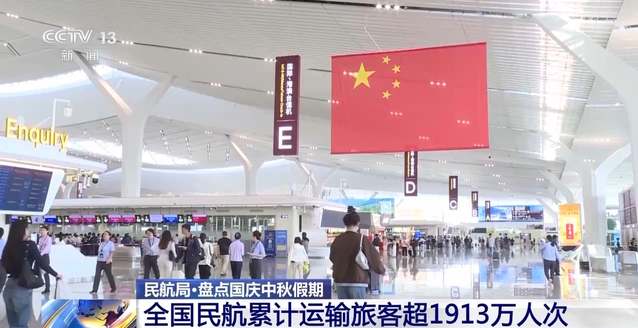 記者今天從民航局瞭解到,今年國慶中秋假期(10月1日至8日),全國民航累計運輸旅客超1913萬人次,假期首日旅客運輸量超過國慶假期歷史峯值。