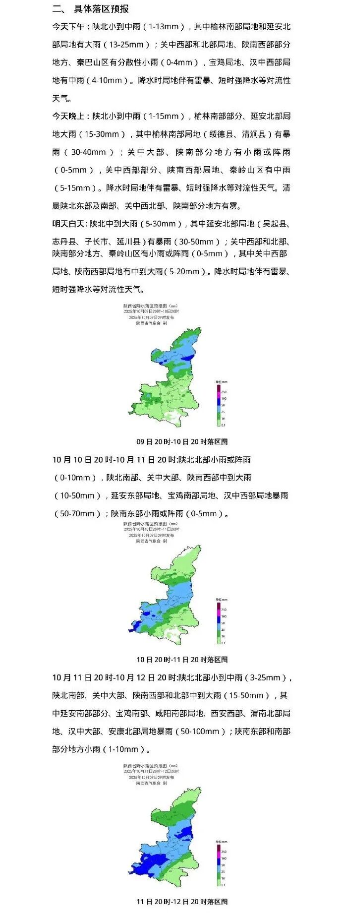 西安市氣象台2025年10月9日10時發佈未來一周天氣趨勢和關注重點:
