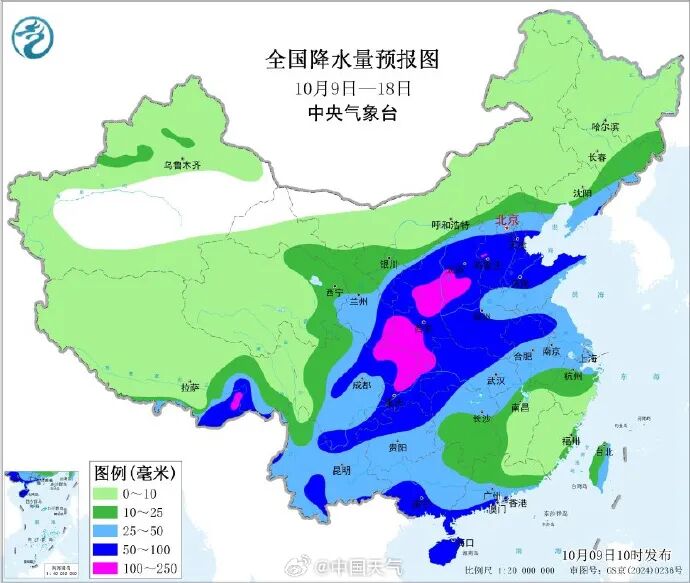 10月9日,據中國天氣消息,中央氣象台預計,未來五天,西北地區東部、四川盆地及華北、黃淮地區多降雨。其中10日至13日,四川盆地北部、西北地區東部、華北南部、黃淮北部等地還將有一次中到大雨過程,尤其四川盆地北部、西北地區東部降雨持續時間長,累計雨量大。