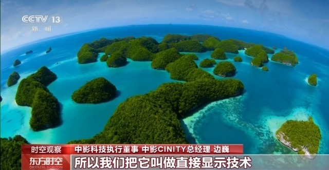 中影科技執行董事、中影CINITY總經理 邊巍:LED這項技術它跟我們傳統的電影放映技術相比,它是一個變革式的。因為傳統的電影我們是一束光有投影機投到銀幕上,我們把它叫做反射式的顯示技術,LED由於它每一個燈珠都是在屏幕上發光的,所以我們把它叫做直接顯示技術,相當於它把光的應用效率提高了很多倍。再有它的均勻度非常好,因為每一個光點都是在發光的,再就是它的對比度能達到非常高的一個水平。