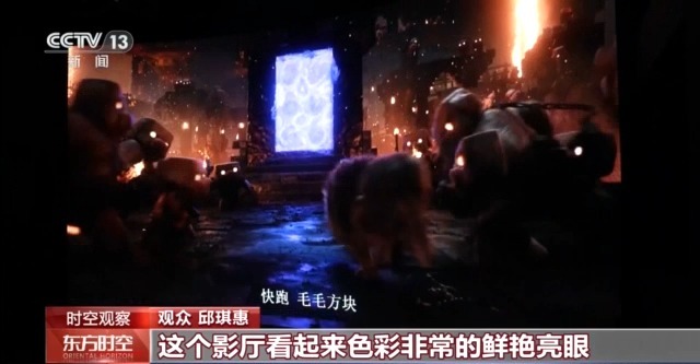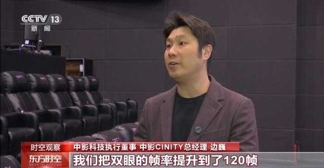 中影科技執行董事、中影CINITY總經理 邊巍:我們把雙眼的幀率提升到了120幀,也就是説每一秒鐘每隻眼睛前都有120幀的畫面信息,這樣就能非常明顯地解決原來畫面在快速移動、慢速移動或者是相對移動過程中出現的畫面的抖動,模糊卡頓等問題。我們也應用了最先進的激光技術,把我們的亮度比普通的銀幕當時的放映亮度提高了5~7倍,這樣整體的沉浸式的觀影效果就非常好。