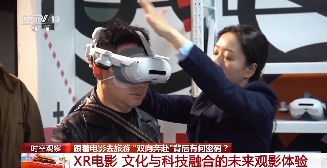 除了AI創作電影,中國的虛擬現實電影也被越來越多的人所關注。在西安的這家虛擬現實未來影院裏,觀眾正在體驗一種全新的電影形式——XR電影。XR即擴展現實技術,包含了AR增強現實技術、VR虛擬現實技術與MR混合現實技術,利用硬件設備結合多種技術手段,將虛擬的內容和真實場景融合呈現。XR電影則是通過這種技術,使得觀影方式從“靜態觀賞”升級為“動態沉浸體驗”。