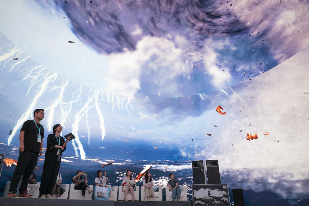 2025年9月12日,觀眾在2025中國文化旅遊產業博覽會上參觀多業態文旅球幕。當日,2025中國文化旅遊產業博覽會在武漢開幕,本次博覽會以“深化文旅融合 暢享美好生活”為主題,融合“展、演、銷、遊”四大功能。室外展區展示以“河山添錦繡”為主題的文旅IP花車矩陣,室內展館集中展現文旅新業態、新場景、新產品,涵蓋數字集羣、智能導覽、低空文旅、非遺文創等方面,吸引了國內2000餘家展商以及50家海外旅行商參展。