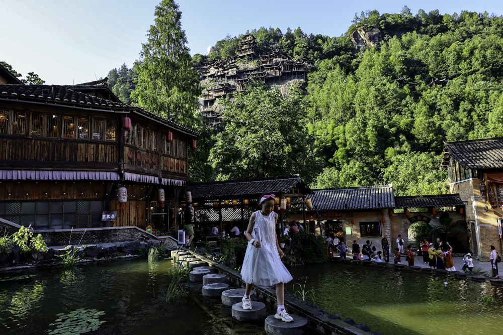 2025年7月11日,遊客在位於江西省上饒市望仙鄉的望仙谷景區遊覽。近年來,望仙谷景區因其獨特的“仙俠世界”景觀火爆出圈,吸引大批遊客來此觀光。景區2024年接待遊客310萬人次,全年實現旅遊收入5.28億元,同時顯著帶動周邊鄉鎮的食、住、行、娛等行業發展。望仙谷景區的建設運營促進了村民返鄉和能人進鄉,提供直接就業崗位超過2000個,帶動周邊就業3萬餘人。