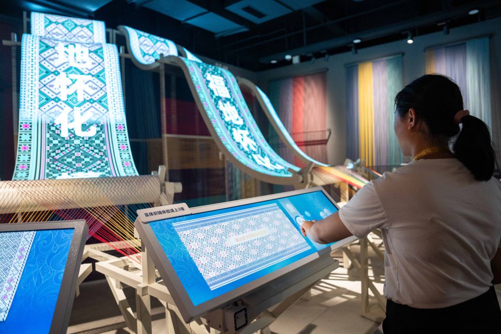 2025年9月16日,遊客在湖南省懷化市五溪非遺園體驗數字化織錦。五溪非遺園於2025年5月正式開園,包含非遺廣場、數字體驗空間和研學工坊三大板塊,運用VR、AR、全息投影等技術打造42個沉浸式非遺體驗項目。目前,懷化以五溪非遺園為抓手,推出非遺主題研學項目、開發深度互動項目,構築特色文化產業體系,吸引更多人瞭解、學習非遺,讓傳統技藝成為城市發展的文化動力。