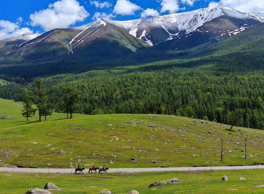 2024年6月4日,遊客在新疆阿勒泰地區哈巴河縣騎馬遊玩。電視劇《我的阿勒泰》播出後,新疆阿勒泰地區迎來客流高峯,“張鳳俠的小賣部”“巴太樹”“彩虹布拉克”等劇中地點成為熱門旅遊打卡地。這場“邊城”與“熱劇”雙向奔赴的文旅盛宴,為當地經濟發展帶來新的增長點。2024年5月,當地接待遊客415.03萬人次,同比增長60.81%;實現旅遊收入36.53億元,同比增長88.25%。