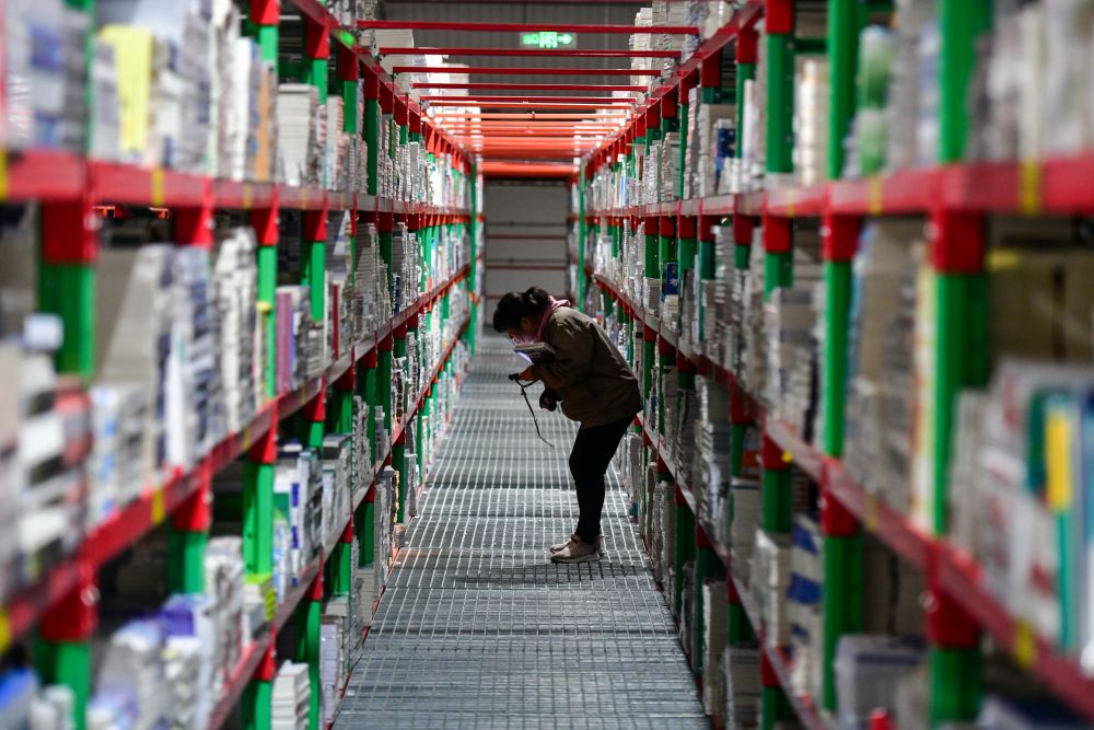 2025年2月19日,工作人員在泰安新聞出版小鎮圖書倉庫內整理書籍。近年來,山東省泰安市立足出版印刷產業優勢,打造泰山新聞出版小鎮,通過拉長壯大產業鏈,推動產業集聚發展,構建龍頭引領、鏈條延伸、集羣共進的出版印刷產業“雁陣”。目前,小鎮已吸引60餘家企業入駐,涵蓋編輯出版、印刷發行、倉儲物流、版權交易、研學旅遊等產業鏈各環節。
