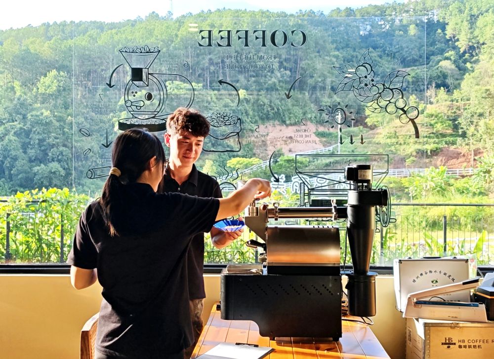 2025年9月20日,雲南省普洱市南屏鎮南島河村“美麗星村·有風咖谷”咖啡體驗中心的工作人員在烘焙咖啡豆。因普洱茶享譽海內外的普洱市依託豐富的咖啡資源和獨特的咖啡文化,積極推進咖啡與旅遊的深度融合,打造了咖啡莊園、咖啡主題街區和咖啡文化集市等多元體驗場景,受到遊客青睞。近年來,雲南憑藉得天獨厚的咖啡種植優勢和文旅資源,通過科技賦能、精品化轉型、業態創新、集羣發展和文化注入,逐步實現“咖啡+文旅”產業鏈各環節價值提升。