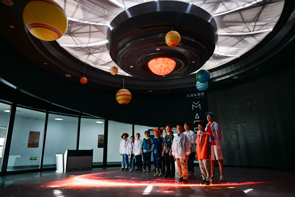 2025年7月29日,參加暑期研學的小朋友在青海省海西蒙古族藏族自治州冷湖鎮“冷湖實驗室”學習天文知識。冷湖鎮曾是因石油而興、又因油盡而沉寂的工業遺址小鎮。然而,得天獨厚的地理條件,讓冷湖鎮成為理想的觀星地。近年來,當地發展科幻特色文旅,讓戈壁小鎮煥發新的生機。冷湖天文觀測基地引進十餘家科研單位的數十台望遠鏡,依託天文資源和戈壁奇景,打造火星實驗室、黑獨山等“出圈”地標。連續舉辦多屆的“冷湖科幻文學獎”,更讓這片土地成為科幻創作的新高地。冷湖鎮以科幻點亮文旅新場景,也為中國西北工業小鎮的轉型探索出一條充滿想象力的新路徑。