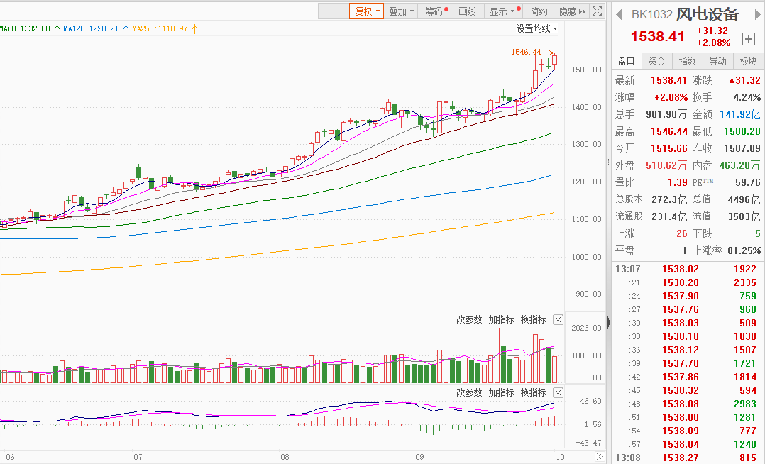 9月以來,天能重工、金風科技等龍頭企業獲機構扎堆調研。天能重工表示正積極探索海洋產品結構等新增長曲線;金風科技2025年上半年風機及零部件銷售收入218.52億元,佔比76.58%。