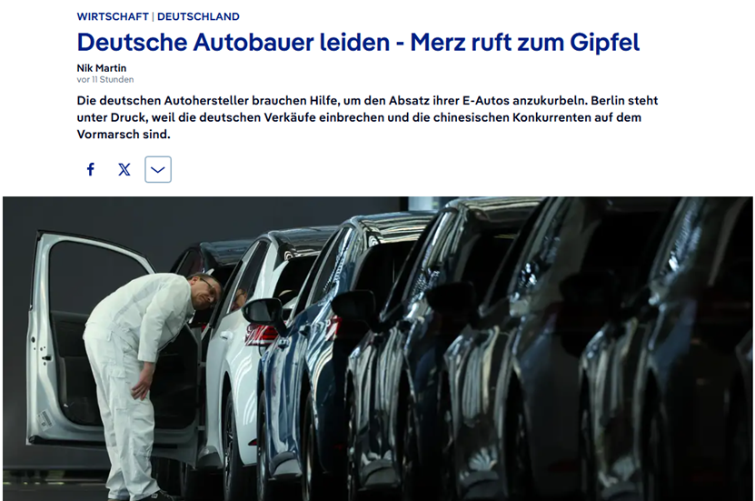 《德國之聲》近日報道,德國汽車製造商正面臨停滯、大規模裁員和電動汽車市場轉型的困境,默茨總理呼籲峯會延長期限內燃機禁令。他批評歐盟2035年新車燃法規禁止計劃對產業競爭力不利,尋求推動技術發展而非直接禁止;市場研究和分析師警告需要明確性和協調補貼政策以提振需求。