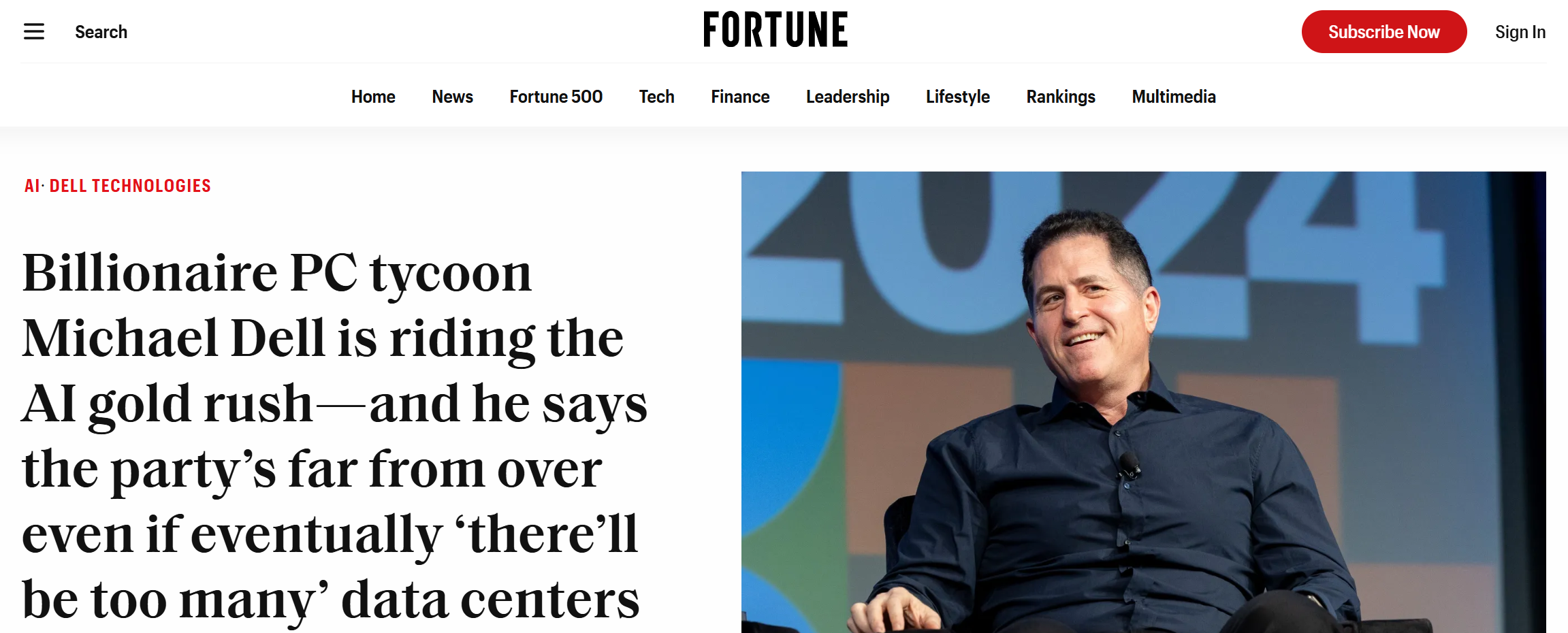 戴爾CEO邁克爾·戴爾:AI數據中心建設終有上限