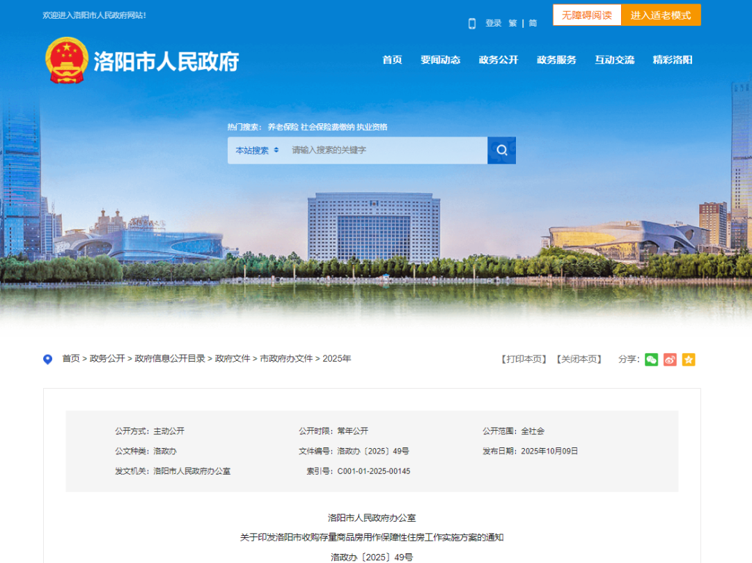 洛陽市住建局負責保障性住房的政策制定、業務指導和監督服務等工作,承擔本市保障性住房房源發佈、承租資格、配租(售)方案、信息系統搭建等全過程管理。