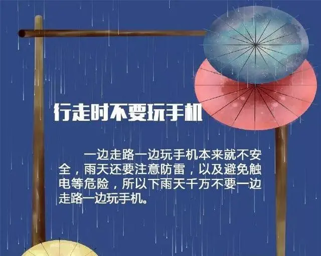 3.户外人員應當躲入有防雷設施的建築物或者汽車內;不要在樹下、電杆下、塔吊下避雨;在空曠場地不要打傘,不要把農具等扛在肩上;