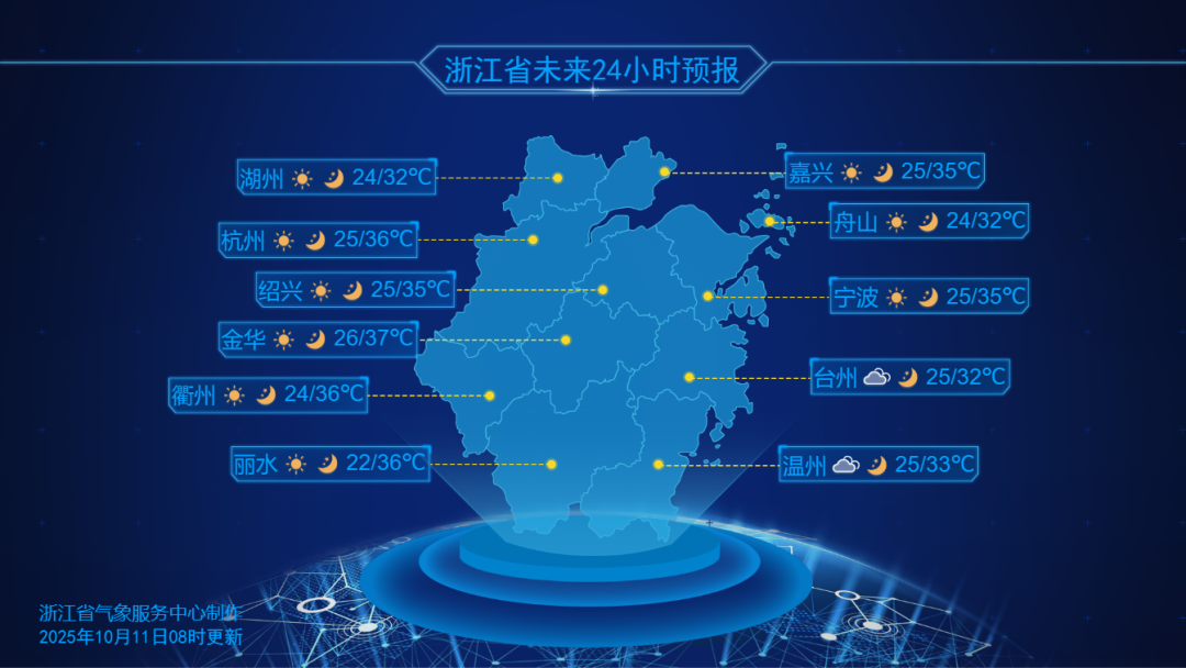 浙北和沿海地區:34-36℃;