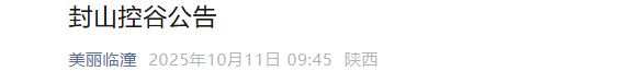 一、自2025年10月11日11時起至本輪降雨結束,對臨潼區驪山山區所有進山道路、山口實行封閉管理(只出不進),除公務、救護、搶險等必要人員外,其他無關人員請勿進入山區。