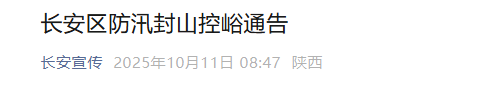 為有效應對10月11日至10月12日持續性降水天氣過程,確保人民羣眾生命財產安全,現就有關封山控谷事項公告如下: