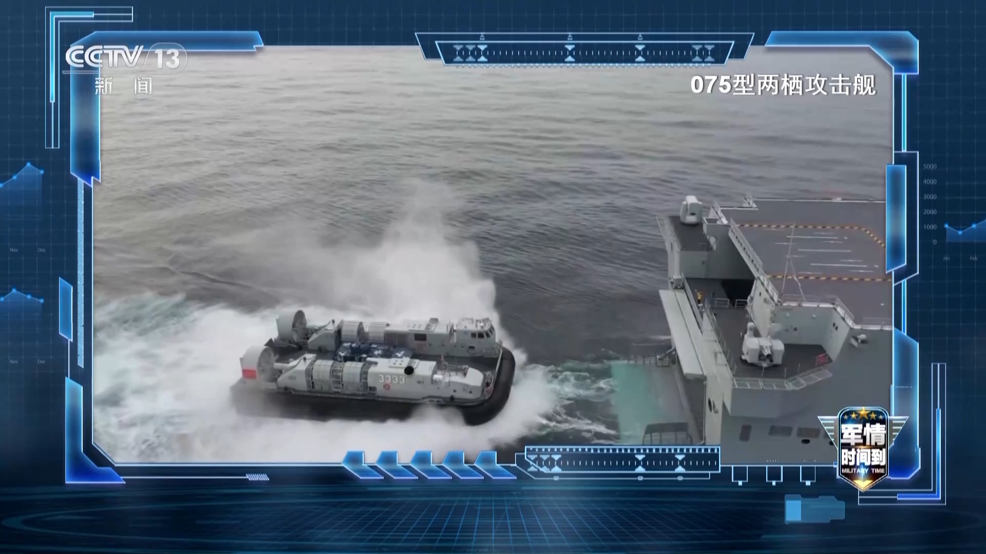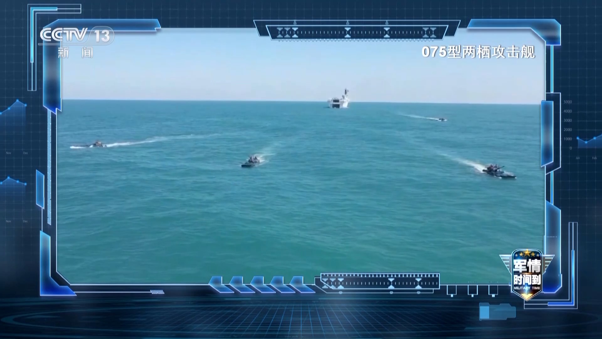 *總枱軍事觀察員 魏東旭:*在島嶼作戰環境當中,075型兩棲攻擊艦是大型的兵力投送平台,也是一個綜合化的作戰基地。它可以同時起降多架直-8型的直升機,可以快速向島嶼和沿岸投送突擊兵力。