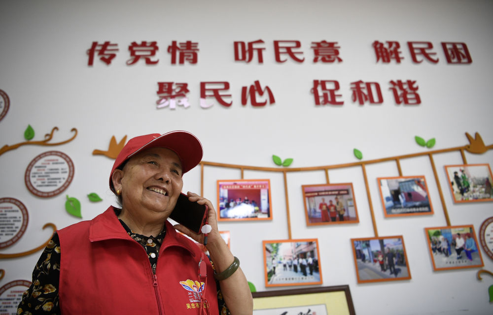 2005年,寧夏吳忠市回族婦女王蘭花從社區居委會主任崗位退休後,與6名老同事成立了“王蘭花熱心小組”。她帶領團隊二十年如一日堅持志願服務,每天奔走在社區各個角落,照顧空巢老人、留守兒童,化解矛盾糾紛,幫助解決社區居民的操心事、煩心事、揪心事,用無私奉獻温暖着每一個人的心田,成為社區志願服務“領頭羊”,吸引越來越多的人加入志願服務隊伍。這是2021年6月16日,王蘭花在社區工作站與居民通電話。