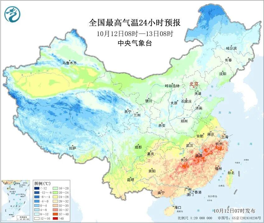 今明兩天,南方秋老虎將繼續發威,江西、浙江、福建、湖南等地仍有35℃以上高温天氣,其中,江西、浙江等地部分地區最高氣温可達37℃以上。