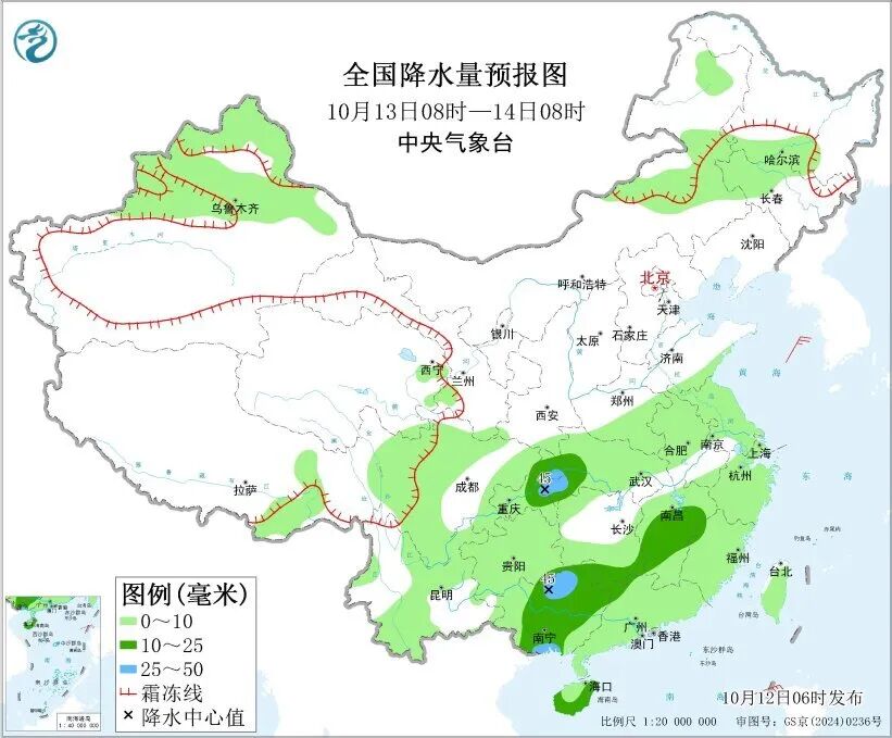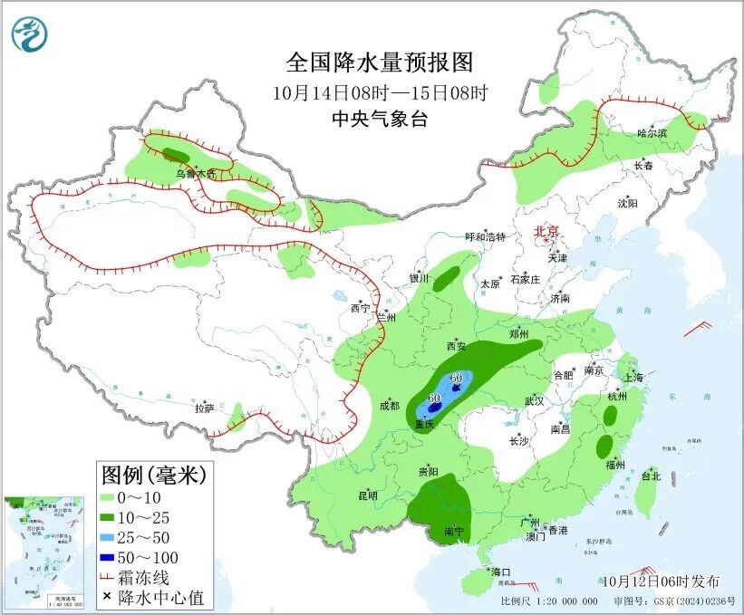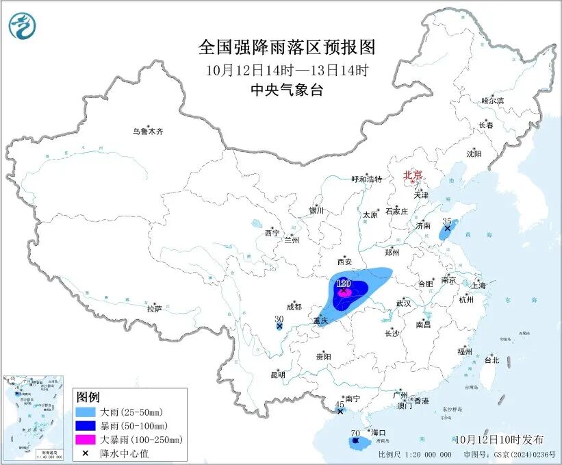 *中央氣象台今天10時繼續**發佈暴雨藍色預警:預計,*10月12日14時至13日14時,陝西南部、四川東北部、重慶、湖北西部、河南西南部、山東東南部及海南島中南部、廣西南部沿海等地的部分地區有大到暴雨,其中,重慶北部等地局地有大暴雨。上述部分地區伴有短時強降水,局地有雷暴大風等強對流天氣。