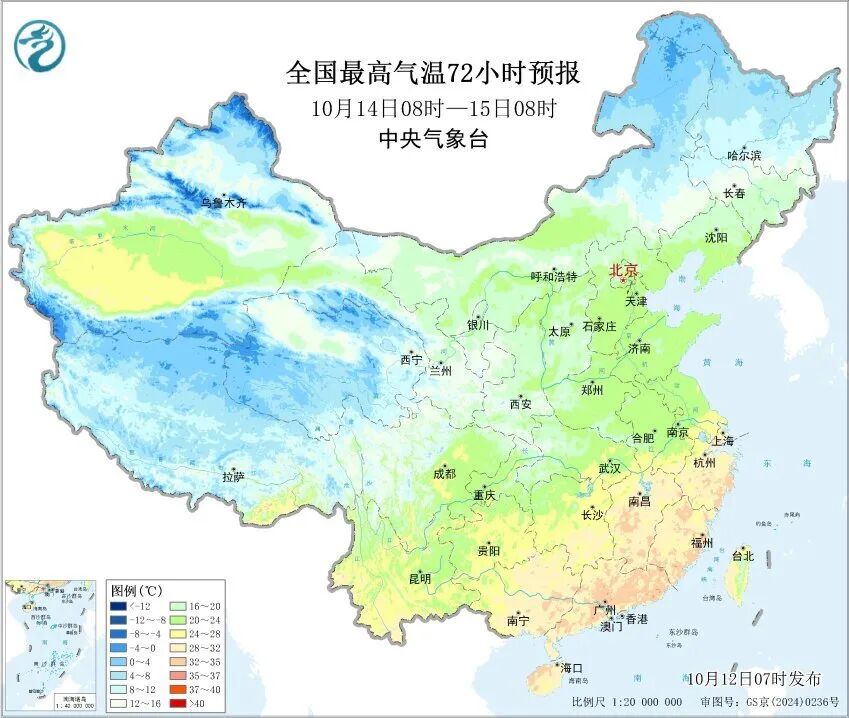 今明兩天(10月12日至13日),我國多地仍將維持秋雨綿綿模式,隨着雨區南壓,華北、黃淮北部等地的秋雨有望迎來間歇。隨着降雨減弱停歇,北方多地開啓升温模式,南方仍受副熱帶高壓控制,高温天氣持續。16日前後,將有一股較強冷空氣來襲,屆時我國大部將迎大風降温。