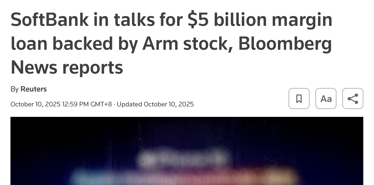 今年以來,ARM股價已錄得超過20%的漲幅,軟銀正將ARM"金融工具化"作為為其AI戰略提供資金支持的關鍵途徑。若此次50億美元貸款成功獲批,軟銀通過ARM股份獲得的保證金貸款總額將從目前的135億美元(截至2025年3月,其中50億美元尚未使用)增至185億美元。