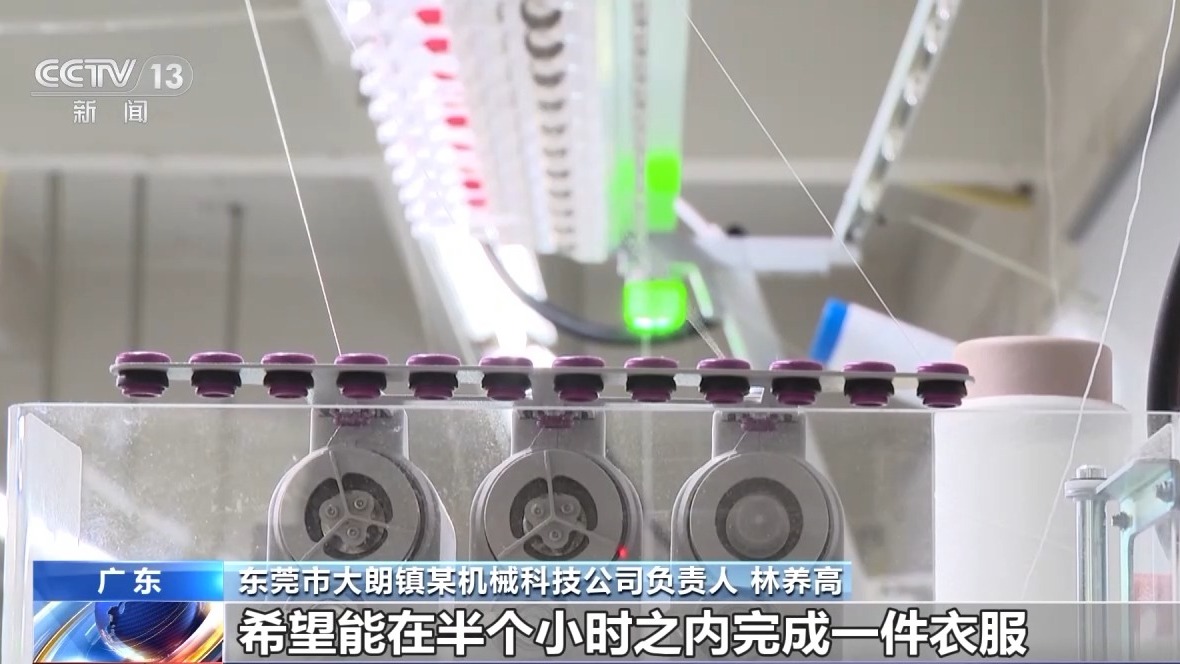*東莞市大朗鎮某機械科技公司負責人 林養高:*我們生產一件衣服現在大概需要一個小時。未來慢慢往50分鐘、40分鐘去改進,希望能在半小時之內完成一件衣服。