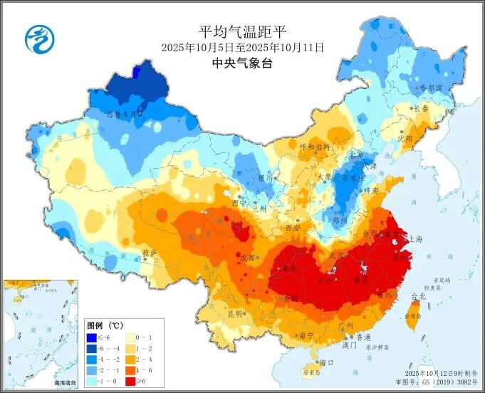 上週(10月5日至10月11日),全國農區氣温呈北方偏低、長江中下游異常偏高的特點,其中黑龍江大部、新疆大部、甘肅東部、寧夏西部、河北中南、河南北部、山東西部等地偏低1℃至4℃,安徽南部、江蘇南部、湖北西南部和東部、浙江、江西、湖南、福建北部、重慶、貴州北部等地偏高6℃以上。