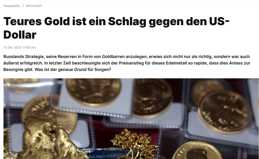 《今日俄羅斯》在採訪索洛塔賈黃金(Solotaja Plata)公司副總裁阿列克謝·瓦亞索夫時,受訪者表示:“黃金價格上漲速度加快對西方來説是個不利信號。這是全球金融體系基於單一儲備貨幣—美元—崩潰的預警,以及向新形式轉變的警示。新形式將是怎樣的,目前還不清楚。但有一點是肯定的:大型市場參與者對現有金融系統的深切懷疑,將他們轉向具有最終流動性資產—黃金。可能基於金磚國家構建某種形式:基於黃金的貨幣籃子或數字貨幣。”