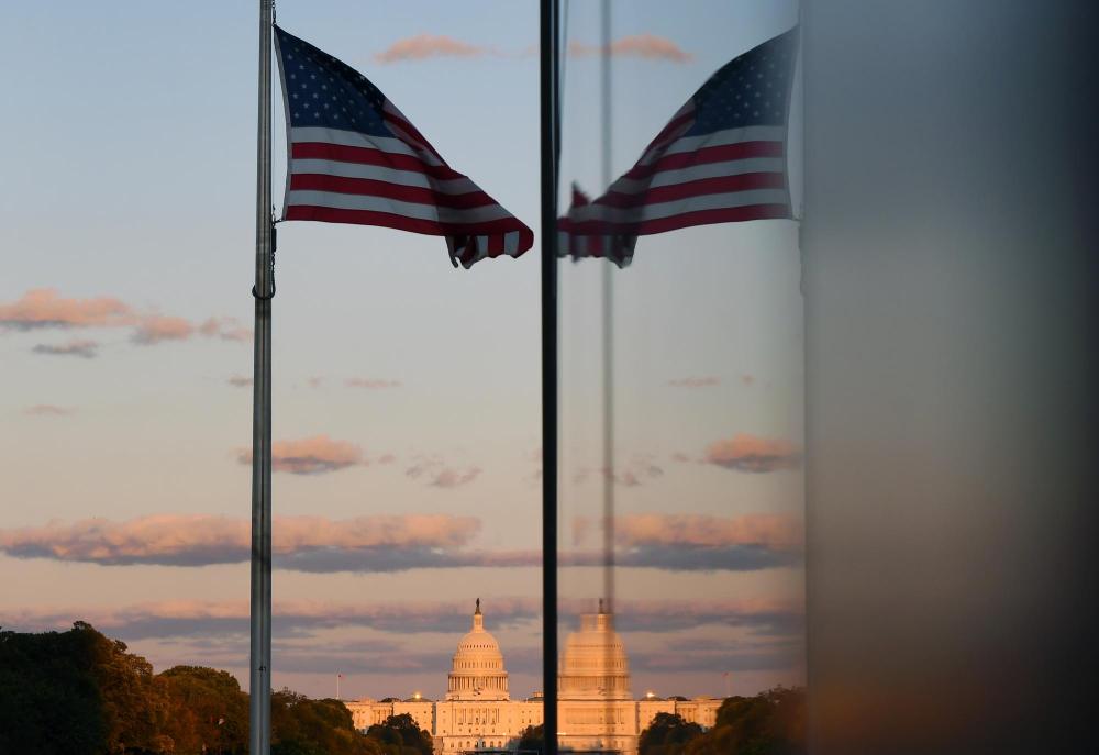 這是10月8日在美國華盛頓拍攝的日落時分的國會大廈。新華社記者李睿攝