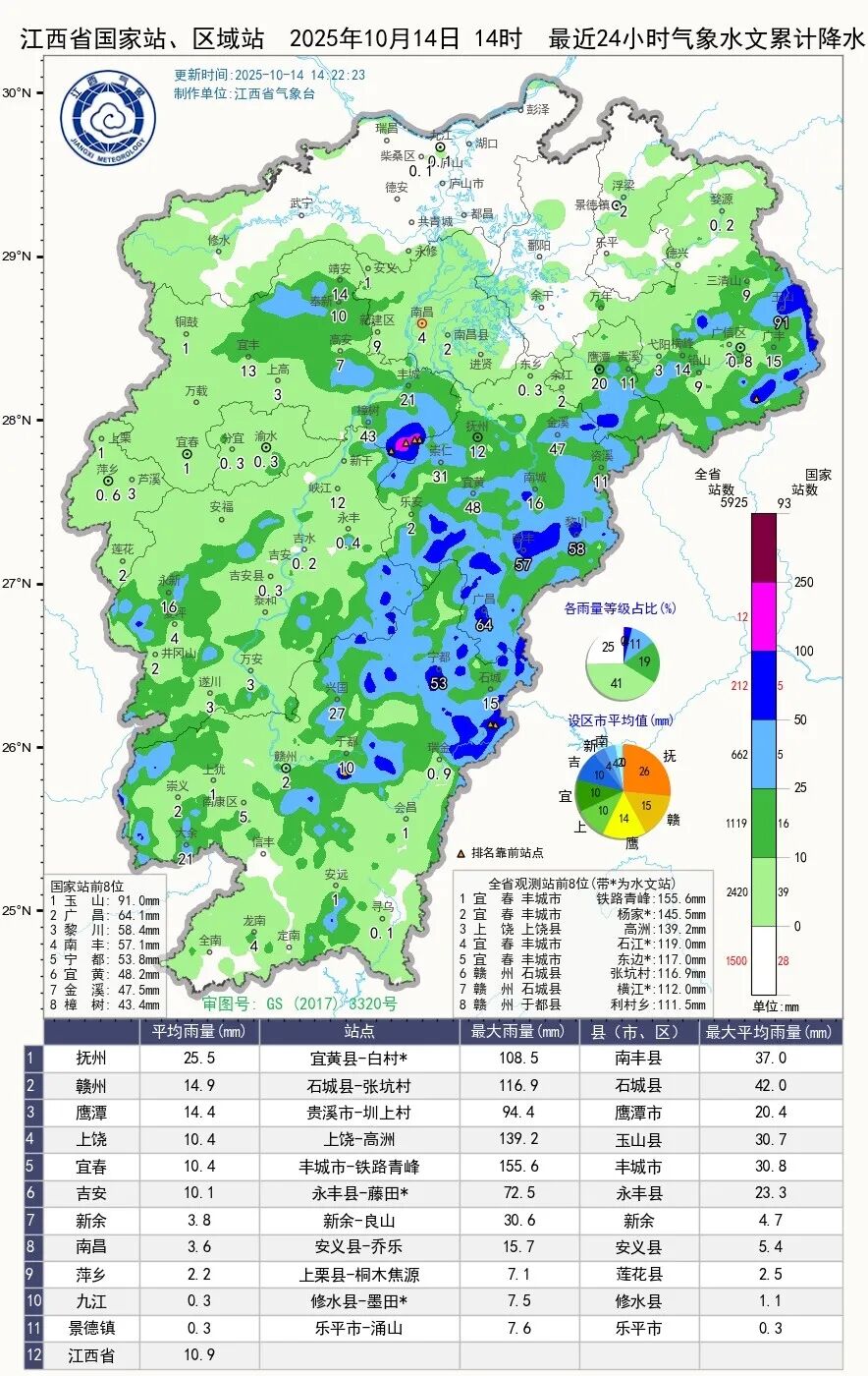 贛中、贛南多雲