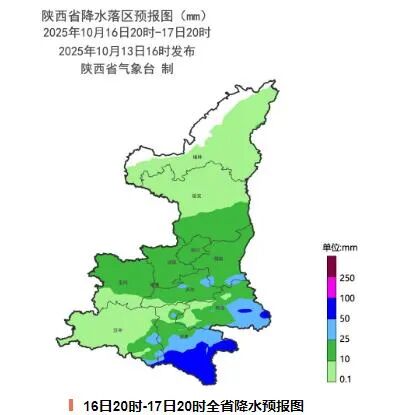 10月16日:全省大部有小雨(0.1~10毫米),關中南部山區、陝南部分地方有中雨(10~25毫米),漢中東部局地、安康北部局地、商洛東部局地有大雨(25~45毫米)。陝北、關中北部有5級(8~10.8米/秒)偏北風,陣風可達6級(10.8~13.9米/秒)以上。