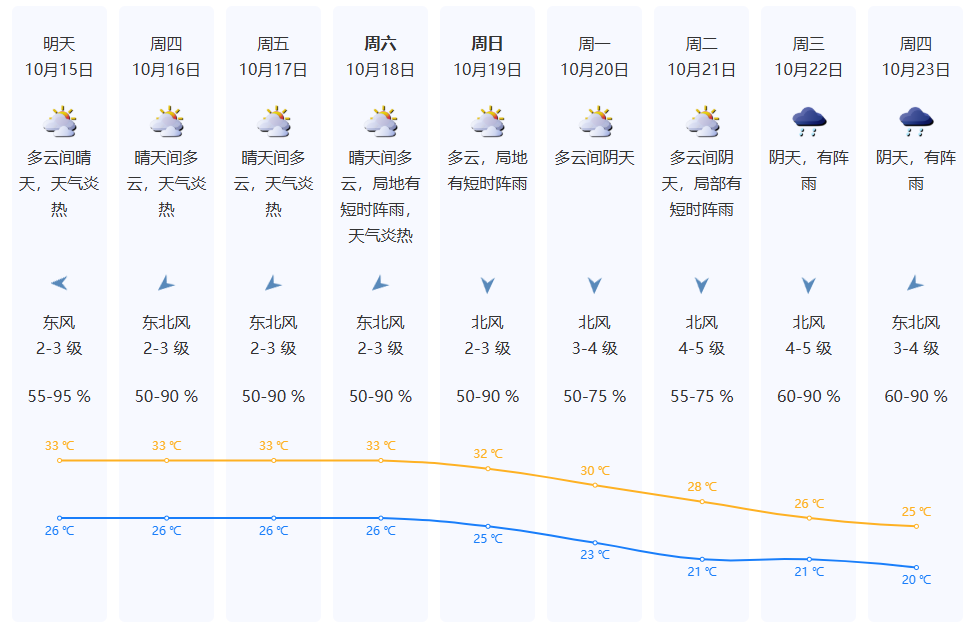 15-19日多雲到晴天,天氣炎熱;