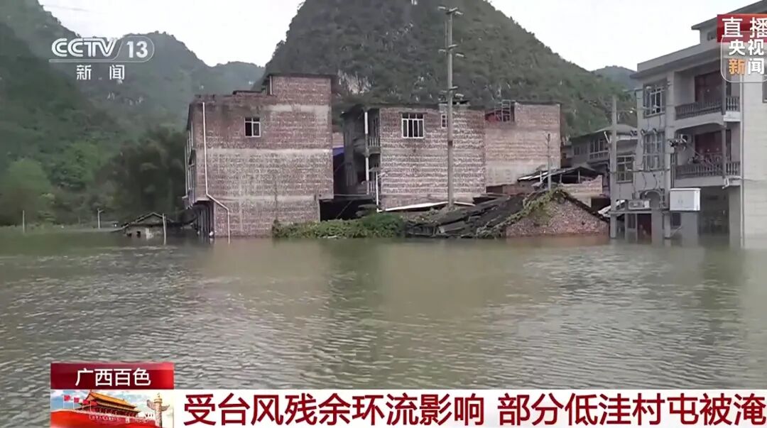 廣西百色被淹村屯。圖/央視新聞