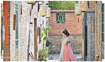 江西景德鎮,遊客在陶陽裏歷史文化街區遊覽。