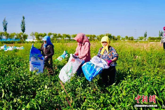 圖為杭錦後旗雙廟鎮辣椒採收現場。 杭錦後旗融媒體中心供圖